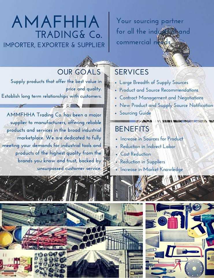 For any inquiries regarding industrial and commercial needs, feel free to contact us at +922132441800, +922132416696 , . QQ # 2169538476 E-mail: amafhha.trading@gmail.com